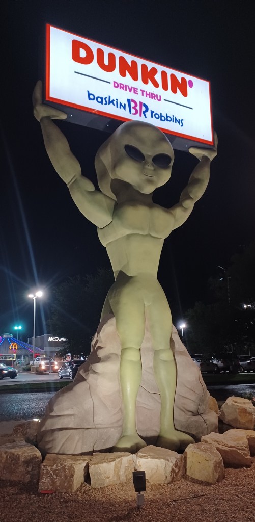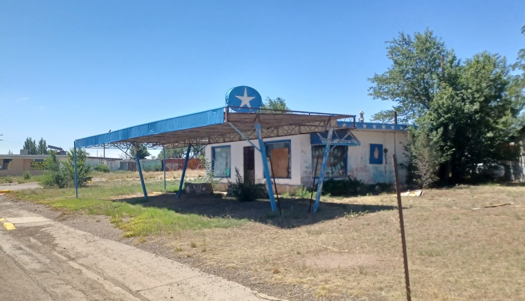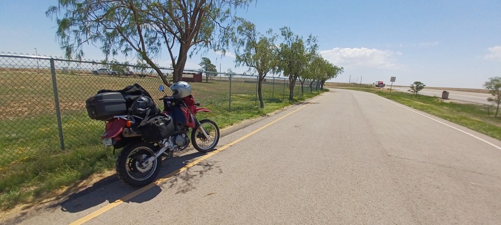 And then there’s the feeling of dread that never leaves: “dear god, don’t let me break down here”. The threat of a break down takes on a debilitating sense of foreboding, sucking what little joy you have left straight from your body. And there’s the constant checking of how many miles you have left to go. Thinking, do I have enough gas? Should I slow down? Is that the grim reaper running next to me? It really is like riding through an oven. My all black riding suit, boots and gloves don’t help, I’ve read black garments can add up to 20 degrees to the body temperature, putting my body temperature at sun plus one. All the time I’m constantly scanning the horizon for any hint of shade. Plant a tree every now and again you useless fuckers!