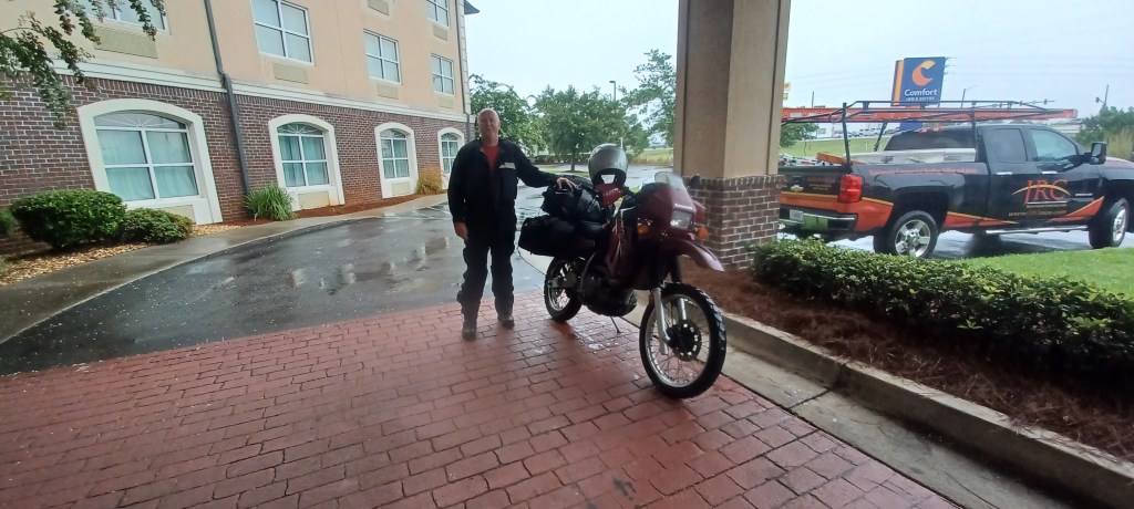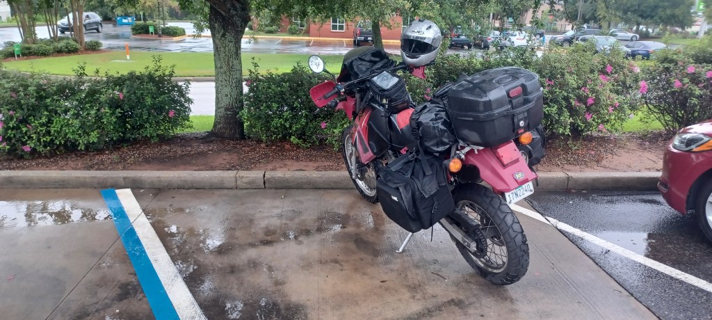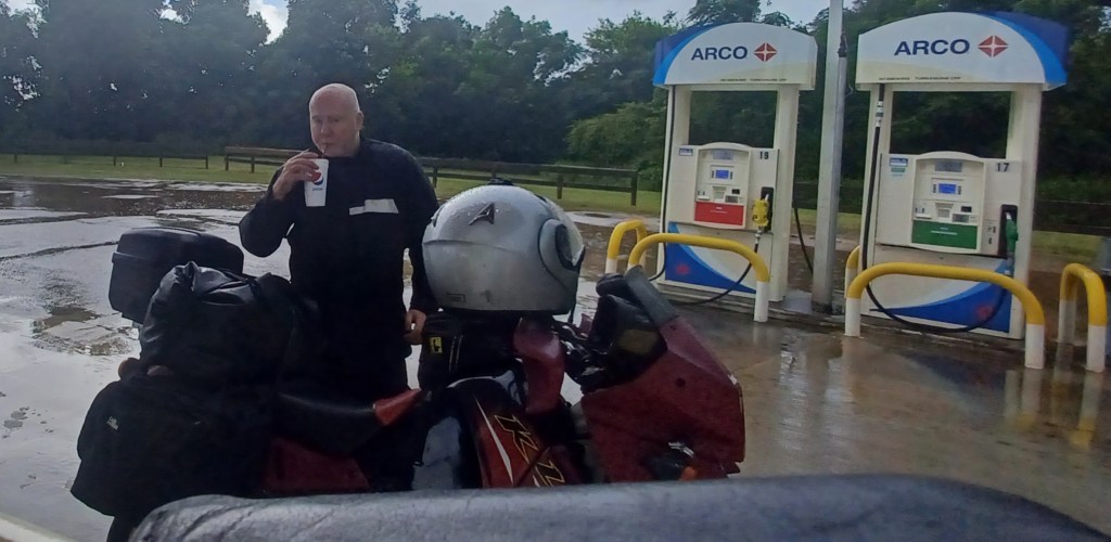 Riding in the heat is horrendous. All you can do is focus on the never ending, mind numbing, incessant heat. Any slight breeze becomes a philosophical observation. Tiny decisions become of the utmost importance: helmet visor up or down. Jacket opened so you’re like a ballon animal in a wind tunnel, or closed so your body slowly cooks itself. Your lips become cracked and your mouth bone dry.